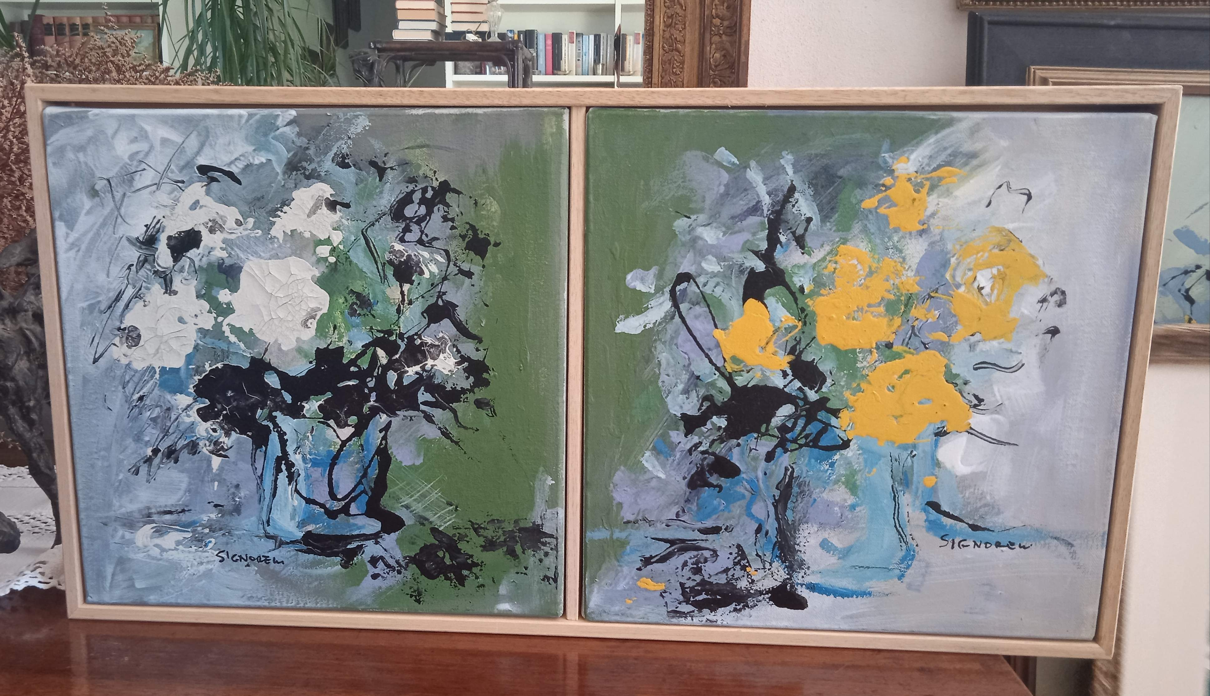 Tris di fiori n.5/6/7 Acrilico Tecnica mista su tela
